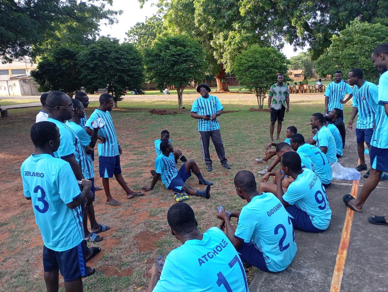 Photo d'ensemble des équipes (secteurs d'activités) au coup d'envoi du tournoi du 1er Mai 2023