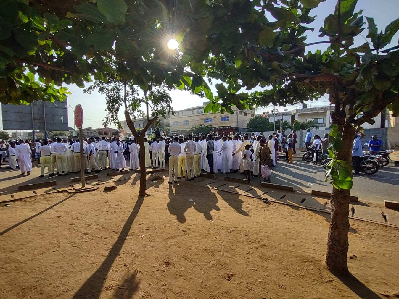 Arrivée et accueil devant la Cathédrale de Lomé.