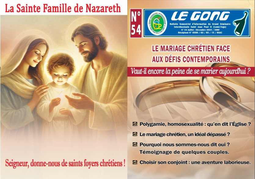 Tout ce qui précède indique l’intérêt d’une réflexion approfondie sur le mariage de façon générale, et en particulier sur le mariage chrétien. C’est cette tâche que se donne le 54ème numéro du Bulletin semestriel d’information du Grand Séminaire interdiocésain Saint Jean-Paul II de Lomé.
