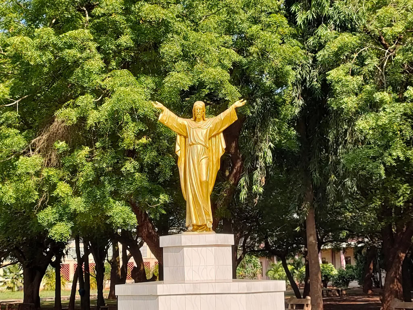 Arrivée et accueil devant la Cathédrale de Lomé.