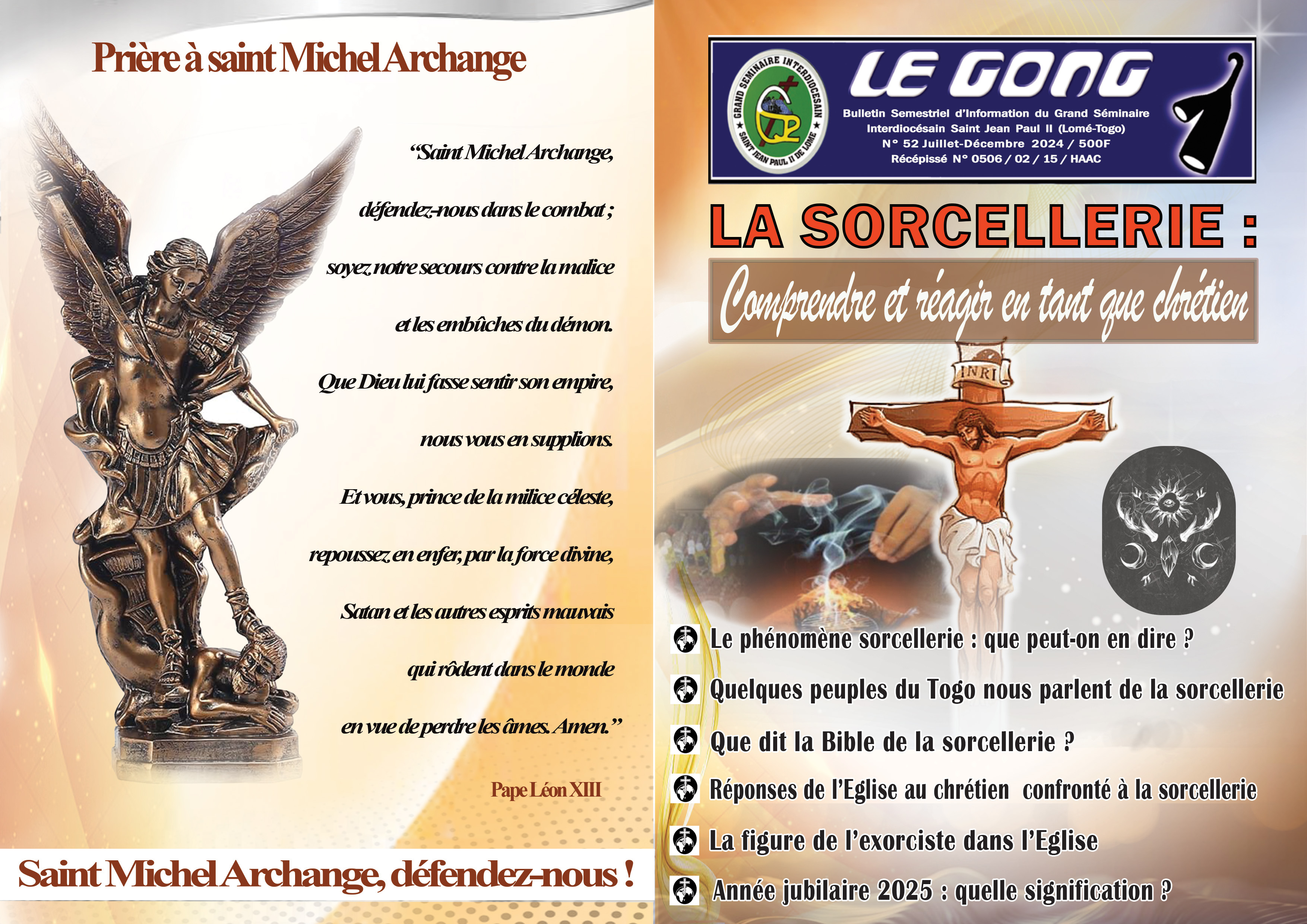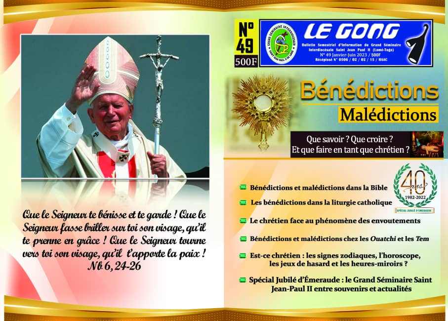Ce numéro se penche également sur les 40 ans d’existence du Grand Séminaire Jean Paul devenu Grand Séminaire Interdiocésain saint Paul II de Lomé. Nous irons donc à la découverte de l'histoire de ses débuts et les richesses spirituelle et artistique de son oratoire.